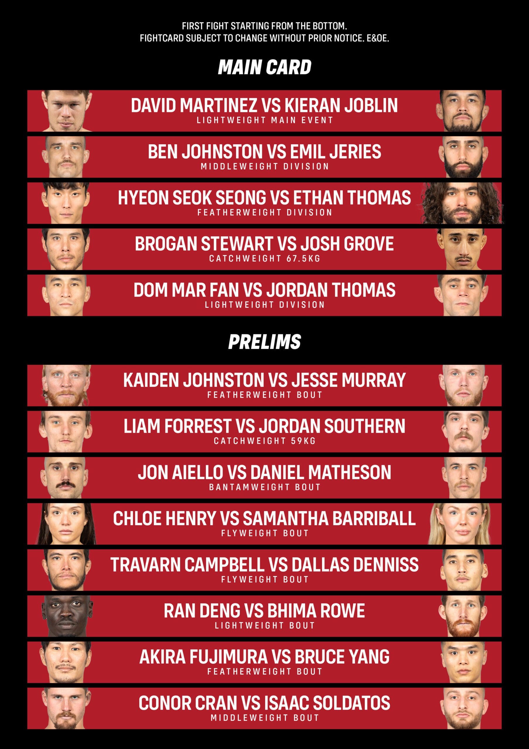 Ticket purchase policy: no refunds. Fightcard subject to change without prior notice. E&OE.