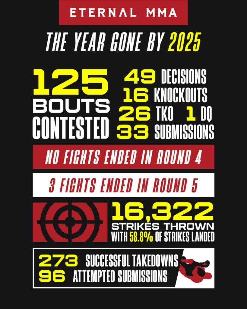 What a year 2025 was for so many fighters, for so many reasons. Undefeated streaks were maintained, legacies were built, and the toughest challenges were accepted. Fighters proved they could not only win, but return weeks later and deliver back-to-back statement performances. Many athletes put their name on the map and established themselves as real threats inside the Eternal Cage.