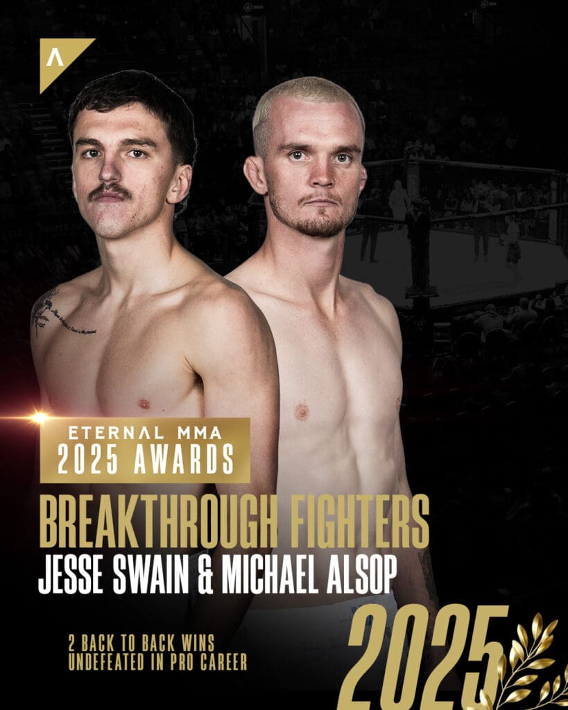 That’s why this year, we’re doing something special. For the 2025 Breakthrough Fighter of the Year, we’re recognising not one, but two athletes. Jesse Swain and Michael Alsop both turned professional in 2025, went undefeated at 2–0, and delivered back-to-back knockout finishes.