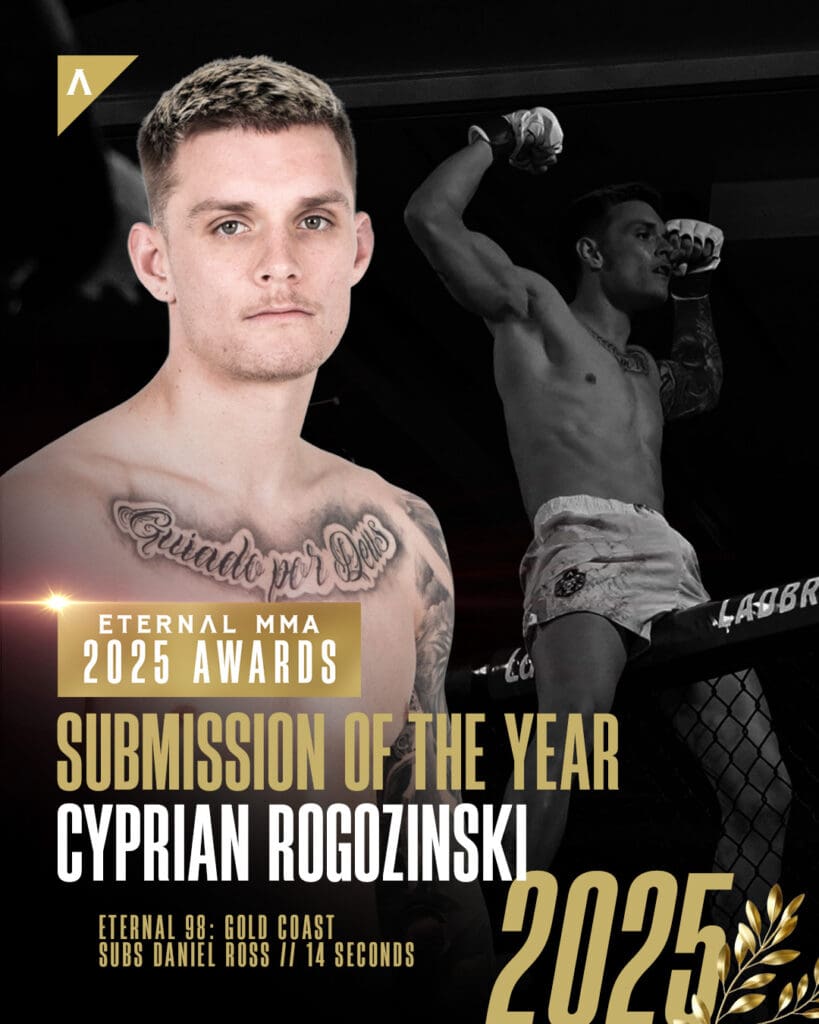 In 2025, we saw so many iconic knockouts that even narrowing it down to the nominees was no easy task. There were countless finishes deserving of their own flowers; Chili’s KO at Eternal 95 on just 10 days’ notice, Kane Rickus’ head-kick KO at the legendary Eternal 100, and Sam Marles’ savage comeback KO at Eternal 95, just to name a few.