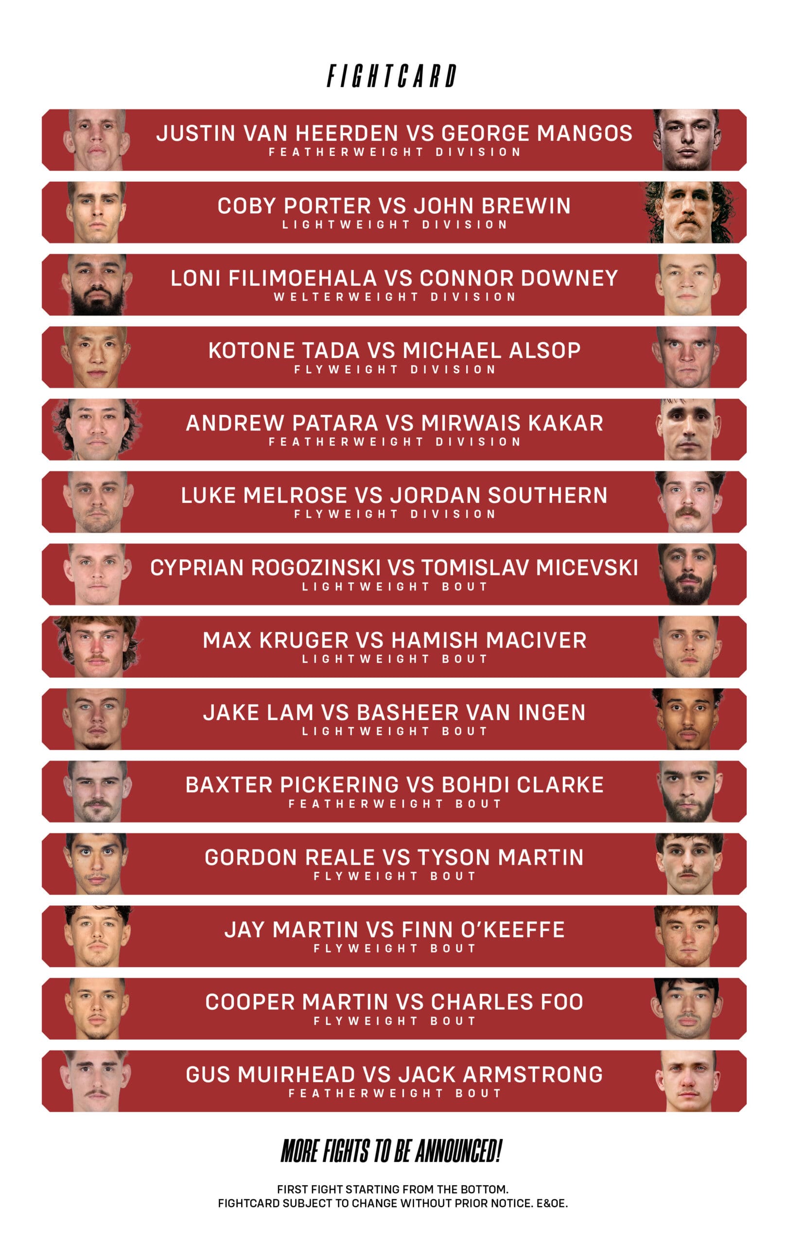 Ticket purchase policy: no refunds. Fightcard subject to change without prior notice. E&OE.