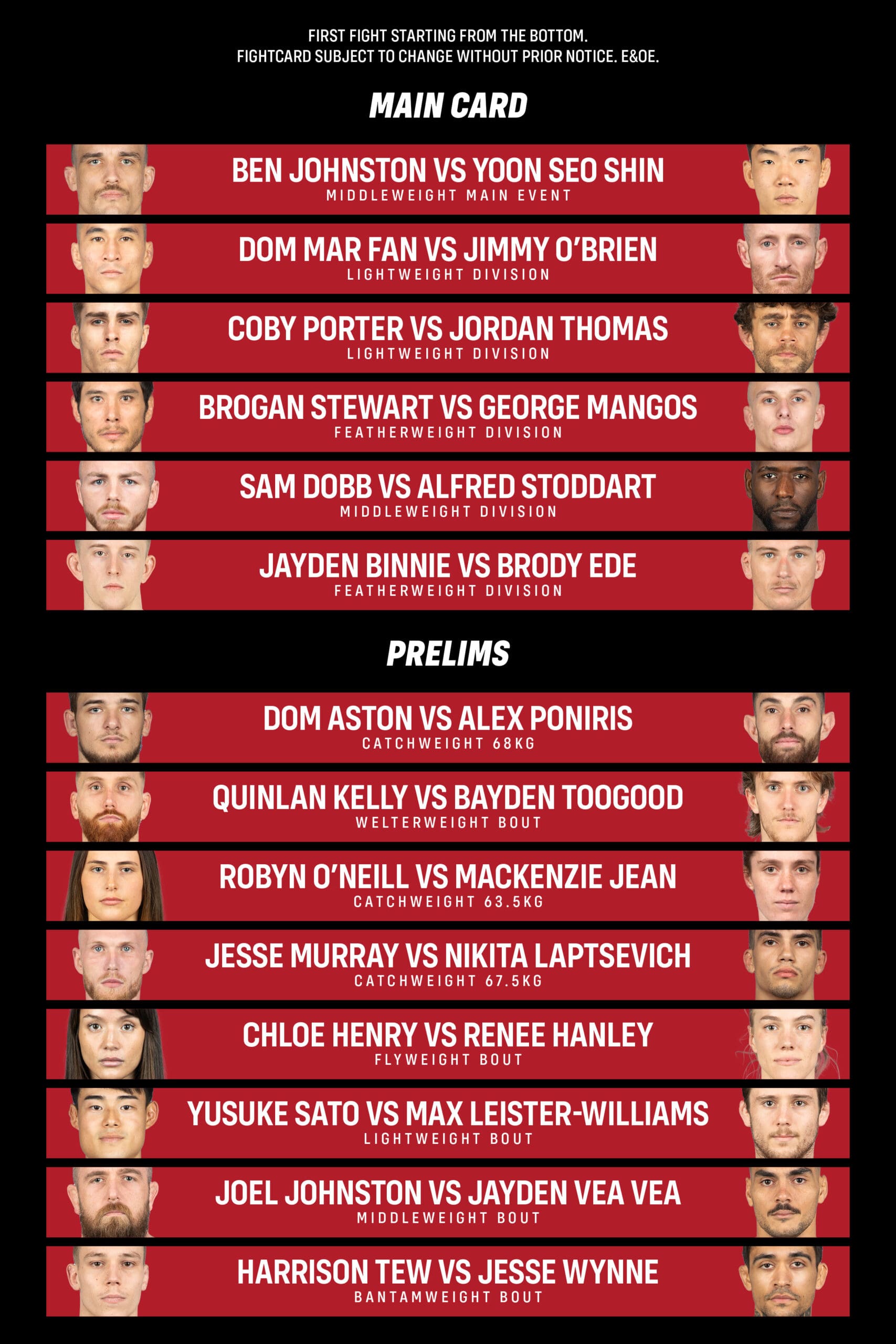 Ticket purchase policy: no refunds. Fightcard subject to change without prior notice. E&OE.