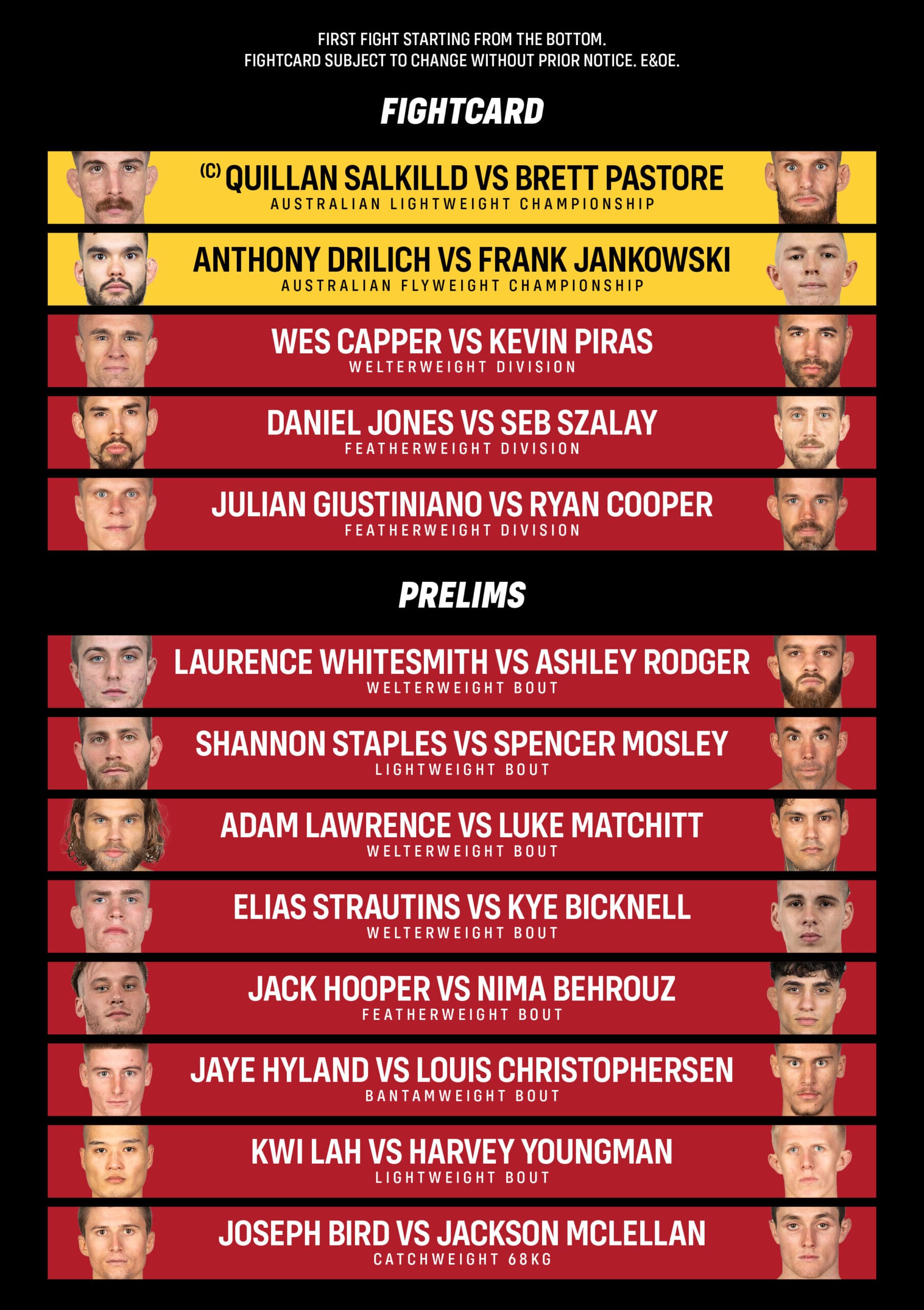 Ticket purchase policy: no refunds. Fightcard subject to change without prior notice. E&OE.