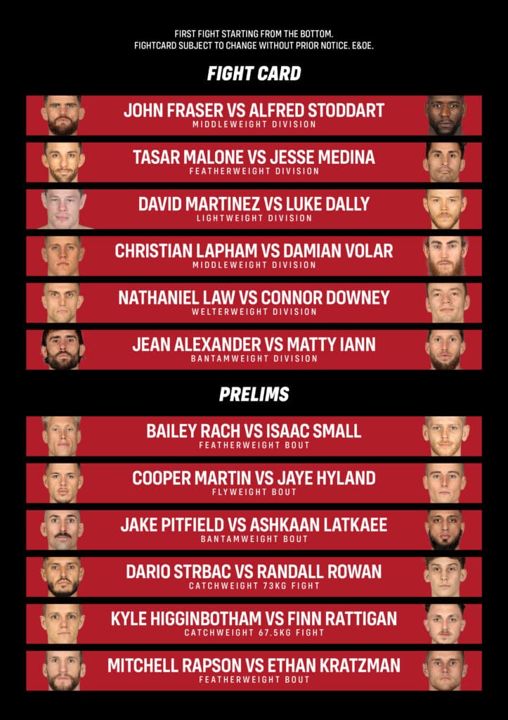 Ticket purchase policy: no refunds. Fightcard subject to change without prior notice. E&OE.