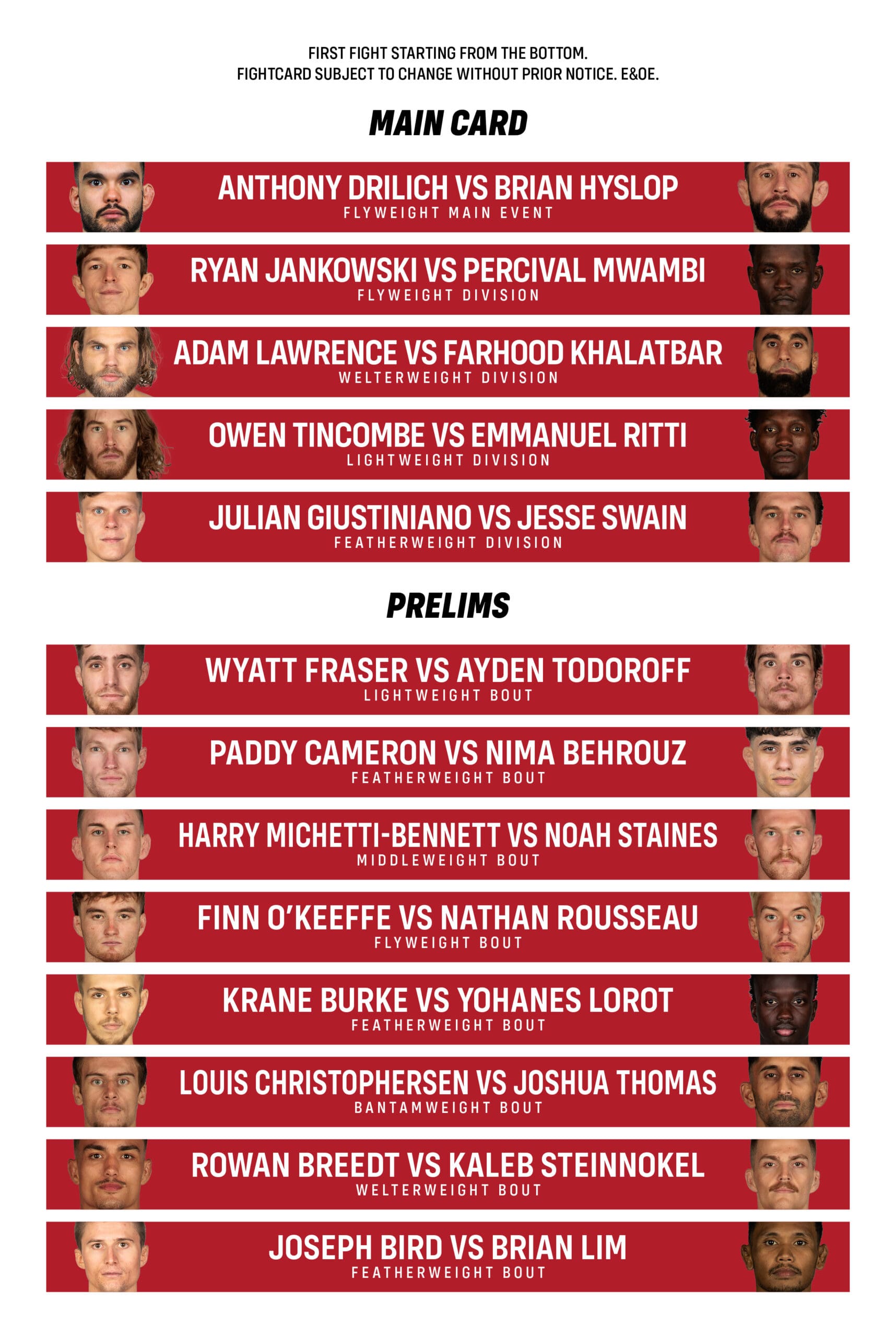 Ticket purchase policy: no refunds. Fightcard subject to change without prior notice. E&OE.