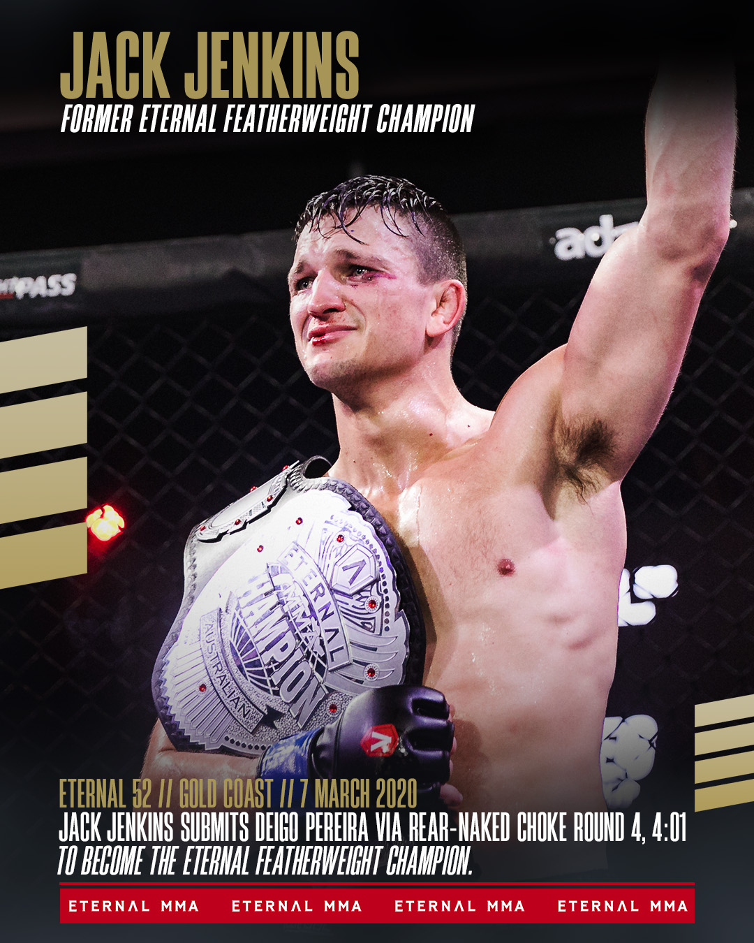 And “see”, everyone did. An eye-opening performance for not only local fans, but dedicated fight fans all around the world eager to see the new breed of international fighters coming through the ranks. With Eternal MMA now being broadcast across the globe on UFC Fight Pass, it was the perfect platform for Jenkins to showcase his abilities to a wider audience.