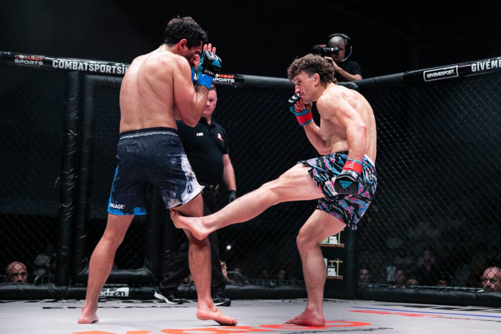 Of course, it wouldn’t be a Jack Jenkins fight without the use of devastating leg kicks to his opponent. It should be noted that prior to the fight, Costa went on record stating that he would never quit as a result of the heavy leg kicks he may endure from Jenkins. Credit to the Scrappy MMA product, he held true to his word, but by the end of round one it was clear that his lead leg was already severely compromised due to the onslaught of shots they had received from Jenkins.